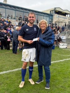 Seldom will one have the pleasure to see the skill and judgement that try required by Conor Dean. He is the master of skill, ball control and game management. He always has space, time and precise wide vision. His passing ability is superlative. Today his strategic kicking and generalship was decisive in a very valuable victory. He received the Manverton MoM Award (See Photo of presentation by Ms Aoife O’Donnell).