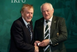Dr Dermot O’Brien is universally known in the world of rugby as “D”. Having left school in 1958, D joined St Mary’s College RFC. In 1960, D was selected for the 1st XV for a trip to Malone, couldn’t afford the £5 fare (he being a poor student in UCD!) and played for the 2nd XV instead. That changed his life. He lost a kidney that day in an unfortunate accident and could never play rugby again. And so began his journey into all aspects of being a non-playing rugby volunteer.
