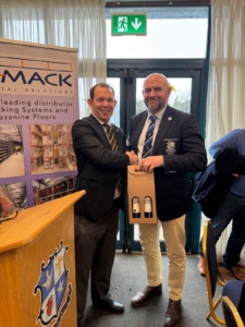Then, VP Stephen called up John Moloney, former scrumhalf and arguably the greatest Mary’s international player ever, to give his recollections of that 1975 win, when he captained the team in Limerick. He swapped some amusing banter with his former international outhalf partner (close friend) and raconteur, Mick Quinn. John recounted some details on the four vital games, played over nine days and the pivotal role played by the great Tom Grace in that final win. It was a real treat to have Tom there, looking almost ready to come on later if needed. John’s most interesting presentation was received with acclamation. You can only imagine the vivid activity, chatter and sociability after the match.