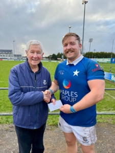 Tommer O’Reilly was deservedly awarded the Manverton MoM Award, (see photo of Tommer receiving the Manverton MoM Award from Liam Birkett) Note: Liam, a former president, player and committee man, is retiring from his position as club trustee after 16 years, he made a major contribution to the club and its wellbeing over 60 years—See Liam, Do I know you? 2020 -21 yearbook and website archive.